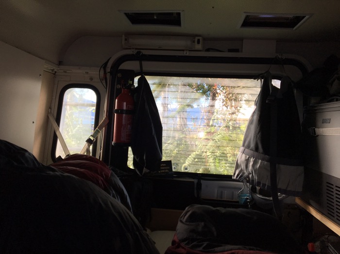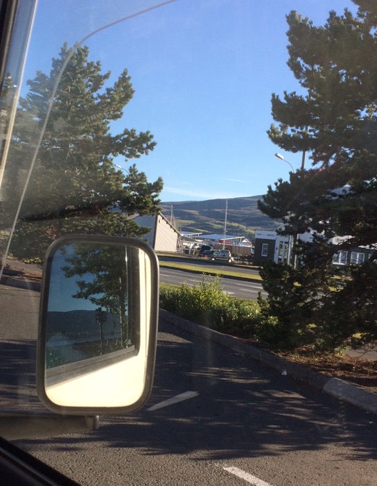 Liegen noch im Auto, die Stadt erwacht langsam. Wir haben unser Mini-Haus zwischen isländischen Autos direkt am Hafen versteckt. Akureyi, die zweitgrößte Stadt Islands ( ca. 18.000 Einwohner) liegt zwar fast Polarkreis, hat aber laut Reiseführer ein mildes Klima und überrascht mit einer für islandische Verhältnissse üppigen Vegetation.