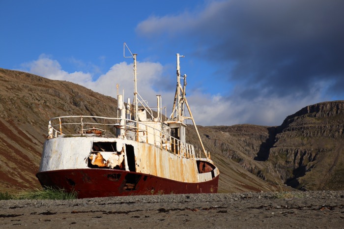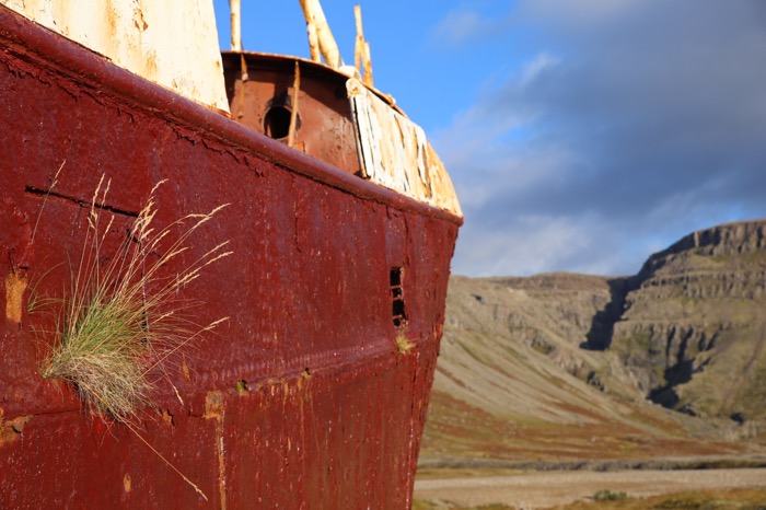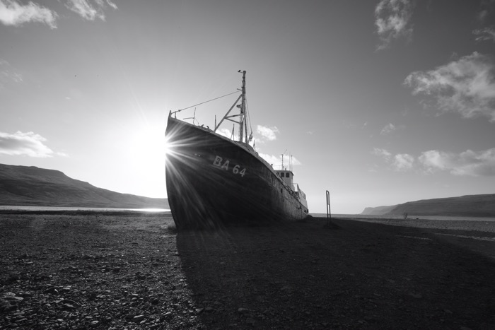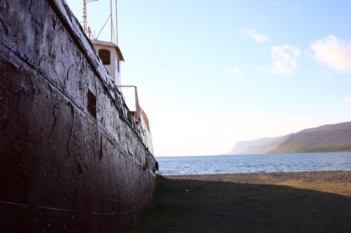Anstatt es zur Ausmusterung im Meer zu versenken, schleppte man es 1963 an die Küste des Tals Skápadalur im Patreksfjörður. 2012 wurde es an Land neu gestrichen.