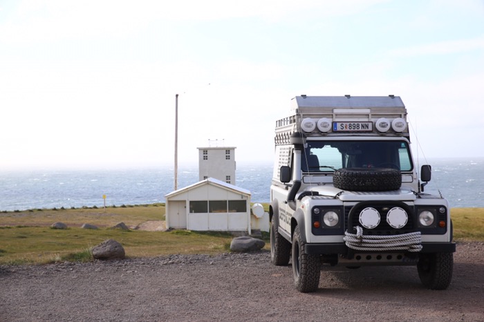 Leider haben wir keine Papageientaucher gesichtet, dafür war der Defender am westlichsten Punkt Islands und Europas.