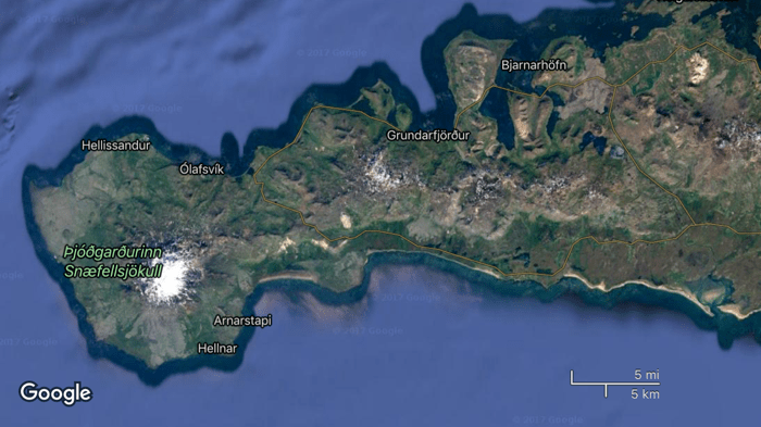 Besonders schön ist seine Lage am Ende der langezogenen Halbinsel Snæfellsness. Zu 3/4 vom Meer umgeben, bietet er einzigartige Ausblicke.