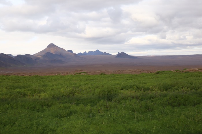 Landschaftlich wurde es aber durch mittlerweile grüne (leider nicht mehr violette) Lupinenfelder und einem See (leider ohne Eisberge) abwechslungsreicher.