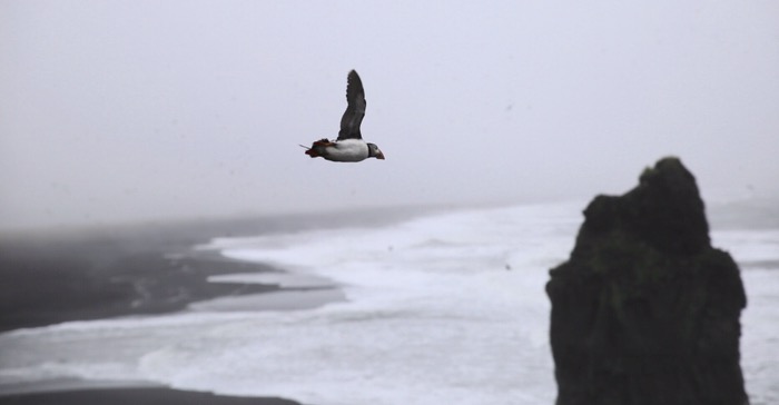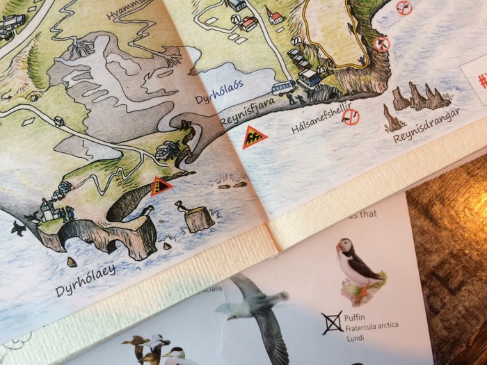Witzigerweise zeigt die Grafik von Visitvik.is die Puffins genau dort, wo wir sie bei Flugversuchen, Landungen und beim Putzen beobachten konnten.