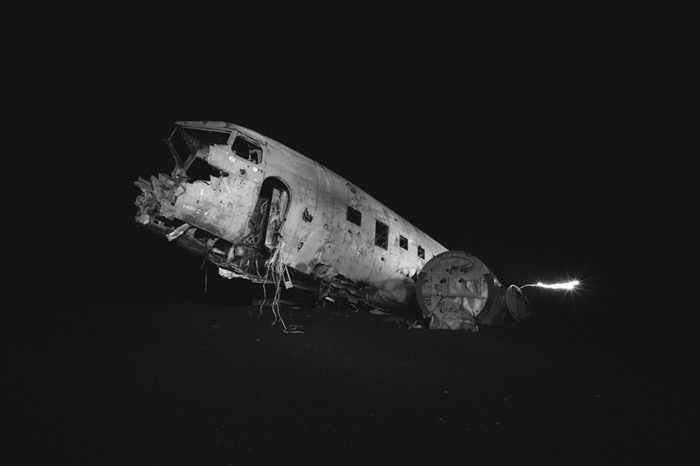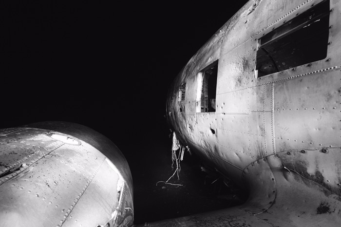 In Mitten einer trüben Novembernacht musste ein Militärpilot eine Douglas Militär Maschine am Strand von Sólheimasandur notlanden.