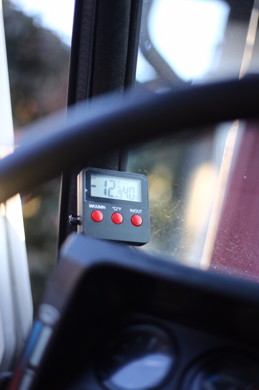 Um für den Stromverbauch unterwegs gerüstet zu sein, haben wir beim Batteriesystem ein bisschen nachgebessert und bei -12 Grad (neues Thermometer mit Innen- und Außenanzeige) ganz schön heißen Strom eingebaut 😉