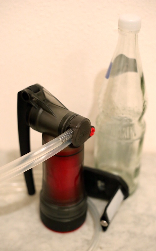 Alternativ haben wir noch einen Wasserfilter MSR Guardian, der alle obigen Stoffe filtert aber nur für kleine Mengen geeignet ist, ca. 2 Liter pro Minute. Durch die geringe Größe können wir diesen auch auf eine Wanderung mitnehmen.