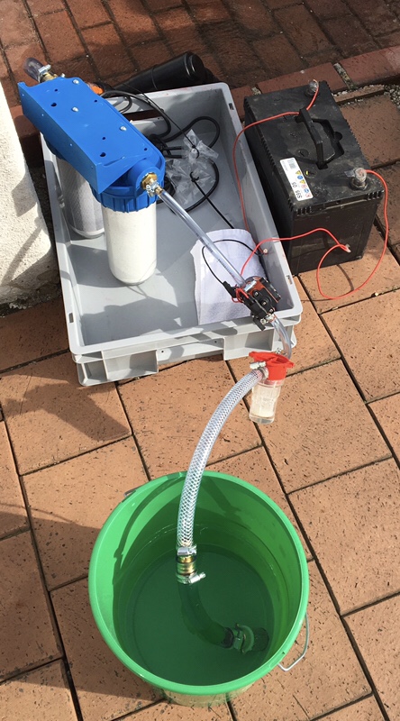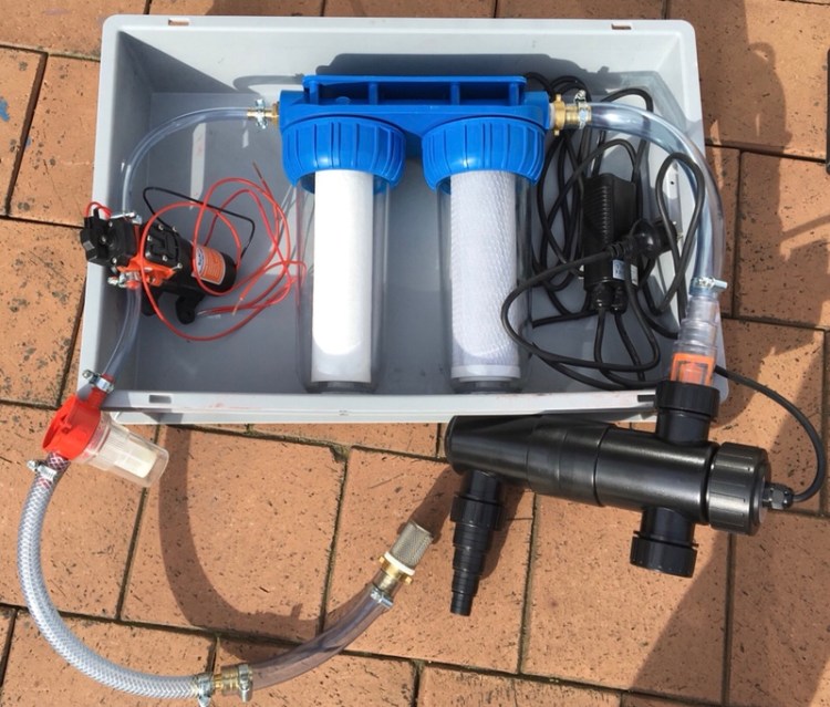 Um auf unserer Reise unabhängiger zu sein, haben wir nach langer Recherche unsere eigene Wasseraufbereitung zusammengebaut -> aktuell noch im Prototypenstatus.
