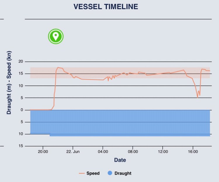 Erster Stop war Antwerpen und aktuell geht es mit ca. 16kn (29,6 km/h) und 11m Tiefgang immer weiter Richtung Westen.