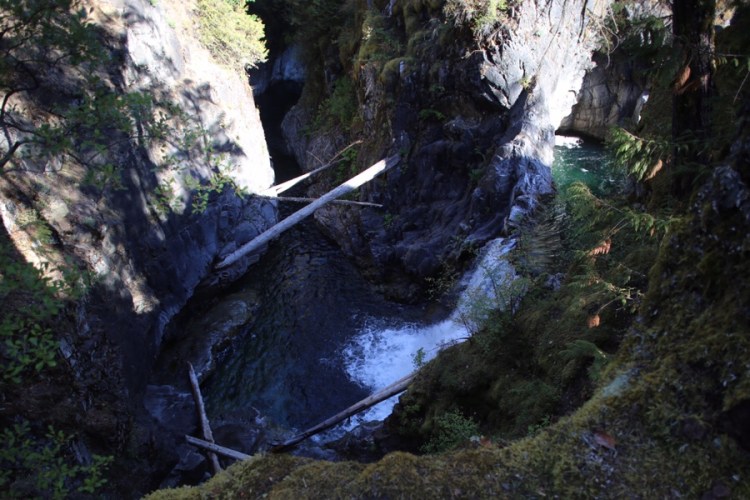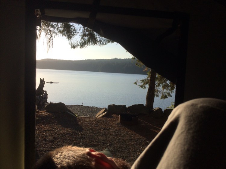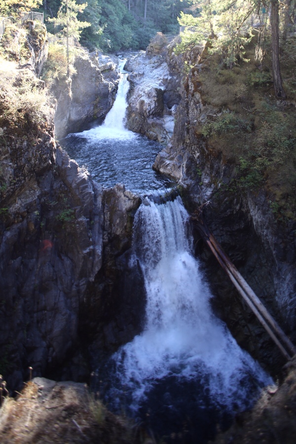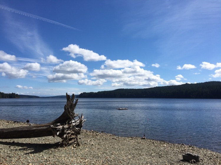 Abseits der Highways ist hier ganz schön wenig los! Und noch weniger an den Mini Campgrounds, die BC über die gesamte Insel verteilt angelegt hat. Wir suchen uns in der BackroadMap immer die mit der Angabe „limited facilities“ raus, was meist nur ein Metallring fürs Lagerfeuer, eine Bank und vielleicht ein Plumsklo bedeutet. Perfekt! Mit Ausnahme eines schönen Campingplatzes an zwei Wasserfällen (Little qualicum falls) campen wir so an vier unterschiedlichen Seen.