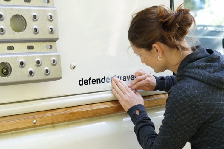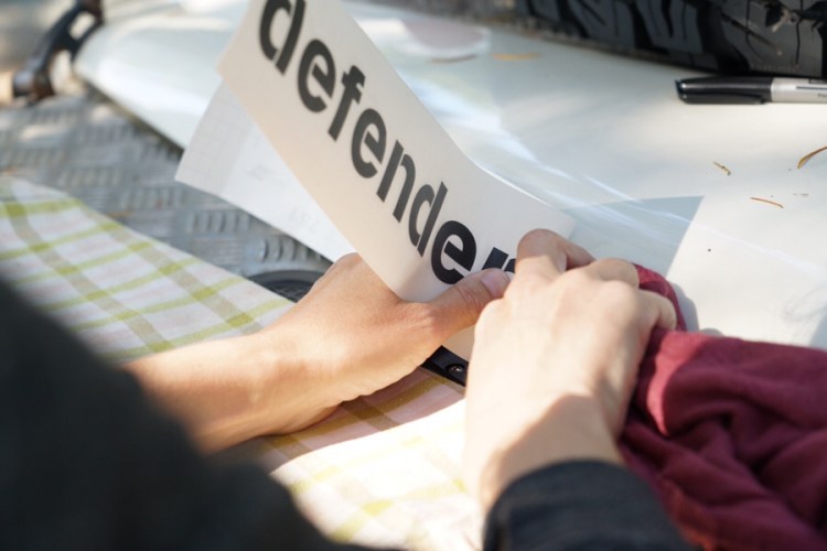 An einem der Seen finden wir bei Sonnenschein endlich die nötige Ruhe unser Branding an den richtigen Stellen am Defender anzubringen. Danke Nicole für deine Unterstützung beim Design und Druck! 🙂