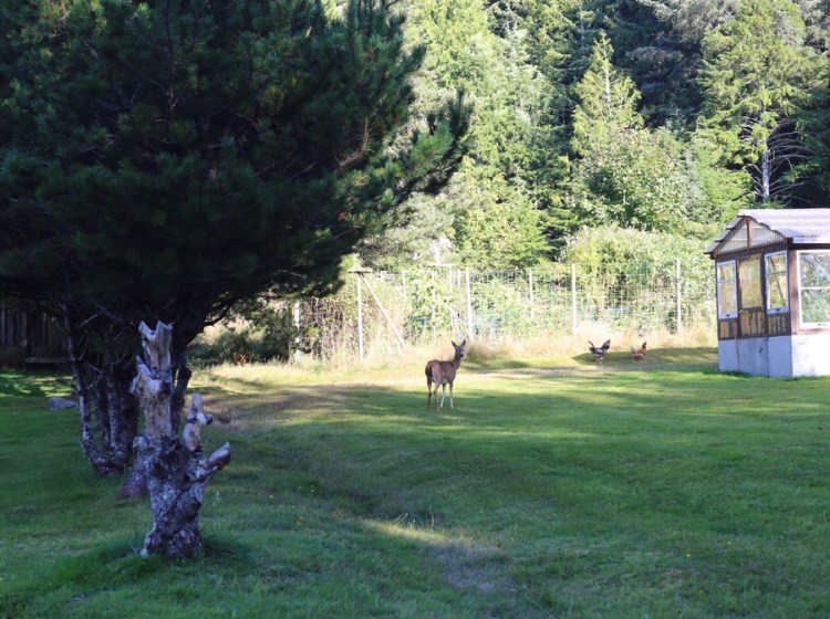 Erst gibts noch ein paar interessante Begegnungen im Pub, das zugleich alte Bibliothek ist und wir bekommen Tipps für San Francisco. Im Ort stehen die Wildtiere im Garten. Ein lustiger Start in dem Miniort Sointula auf der kleinen Insel.