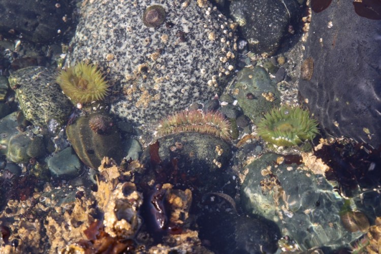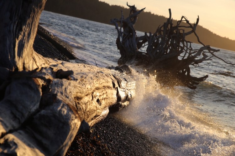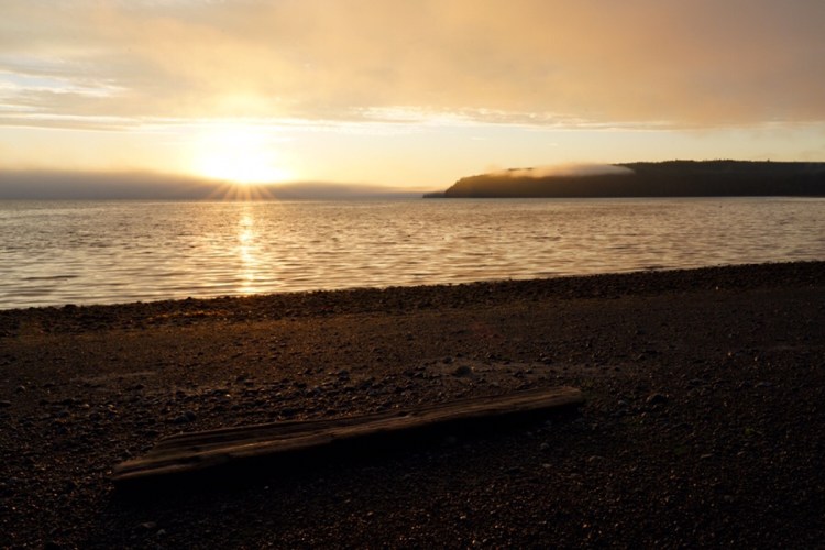 Nebenbei muss man erwähnen, dass der Ort auch ohne Wal voll schön ist, dass die Sonnenaufgänge (die Martina verschläft) schöne Farben haben, dass merkwürdige „Aliengewächse“ sich am Strand tummeln (eines konnten wir sogar fotografieren, bevor es abhauen wollte), dass ums Eck jeden Tag ein wunderschöner Sonnenuntergang mit fotogenem Schwemmholz (also eher ganzer Baum) wartet und wir voll viele liebe Leute kennengelernt haben – inclusive einer Einladung zum Propangaslagerfeuer mit Gitarrenmusik.