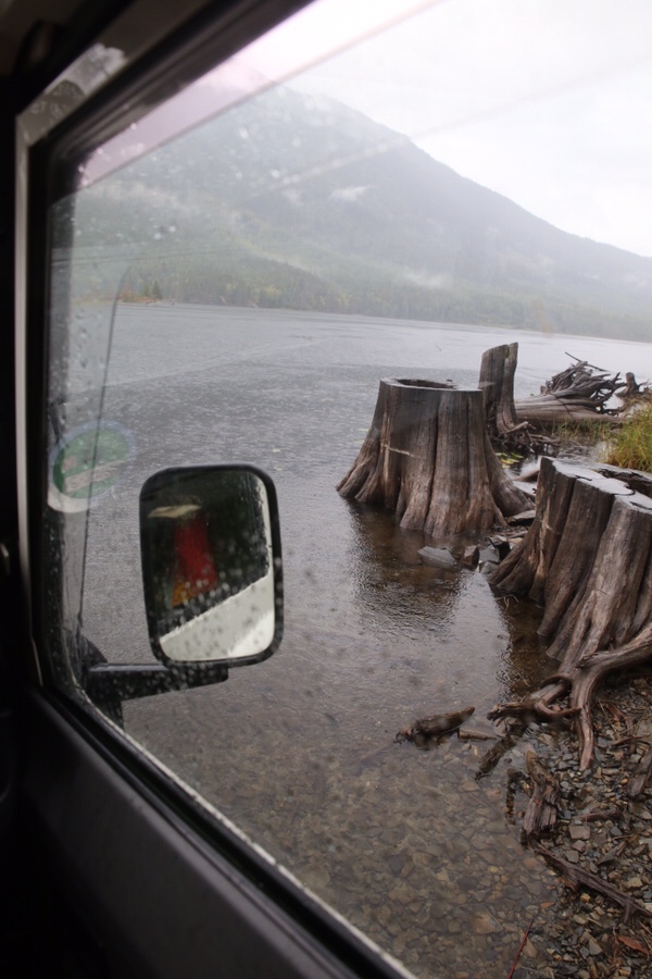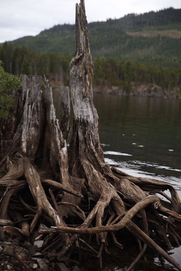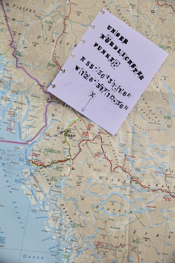 Die Schlafplatzsuche is manchmal nicht so einfach… und man fährt immer weiter, wenns nicht echt passt… so landen wir irgendwo nördlich von Terrace wieder allein an einem See (wir und einige Wurzeln!).