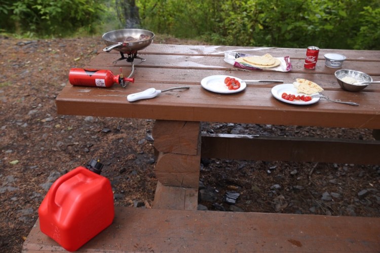 Um den Umweg komplett zu machen, fahren wir noch ein Stück weiter nach Norden und dort finden wir einen guten Platz für ein Steak… bevor wir wieder nach Südosten weiterfahren. Bis Hyder in Alaska wären es jetzt nur noch 110 km gewesen. Aber wir vermuten, dass wir mit dem Grenzübertritt unseren USA-Aufenthalt beginnen würden und entscheiden uns daher dagegen nur wegen dem „Wir waren in Alaska“ hinzufahren.