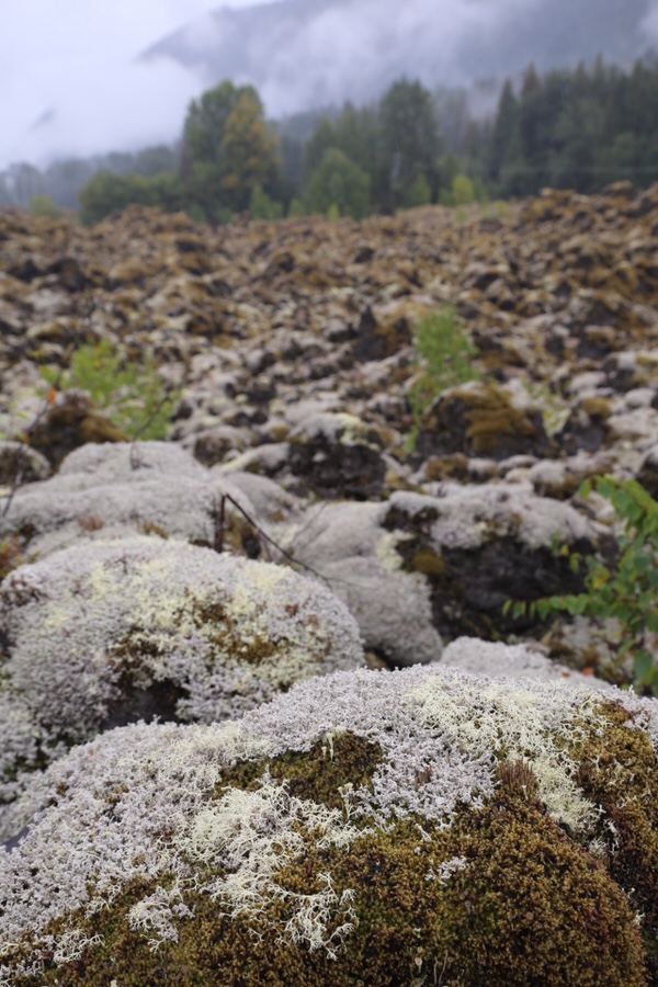 Am nächsten Tag herbstelt es schon und die Farben am Straßenrand werden bunter. Der Indian Summer! Und dann überrascht uns ein riesiges Lavafeld (war eh ein Tipp auf unserem Zettelchen, aber so weit nördlich wollten wir erst eigentlich nicht). Faszinierend, wie viele verschiedene Faunawesen auf ein paar Quadratzentimeter Lava wachsen.