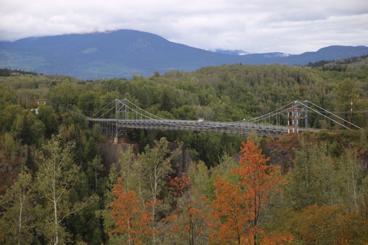 – Die tolle einspurige Brücke bei Old Hazelton.