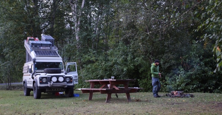 – Der erste Campingplatz ausserhalb des Firebangebietes! -> erste Würstchen am Grill, juhuu, das macht einiges einfacher und ist sowieso viel männlicher als Gas. 😉 Martin hat noch dazu sein eigenes Podest für Auto und Barbecue Platz.