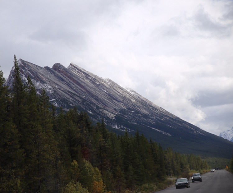 Ich hätte das gern alles im Zeitraffer gesehen, als sich diese Berge zwischen Jasper und Banff auftürmten… die gestreiften Riesen zeigen sogar mit etwas Schnee ihre Struktur noch besser.
