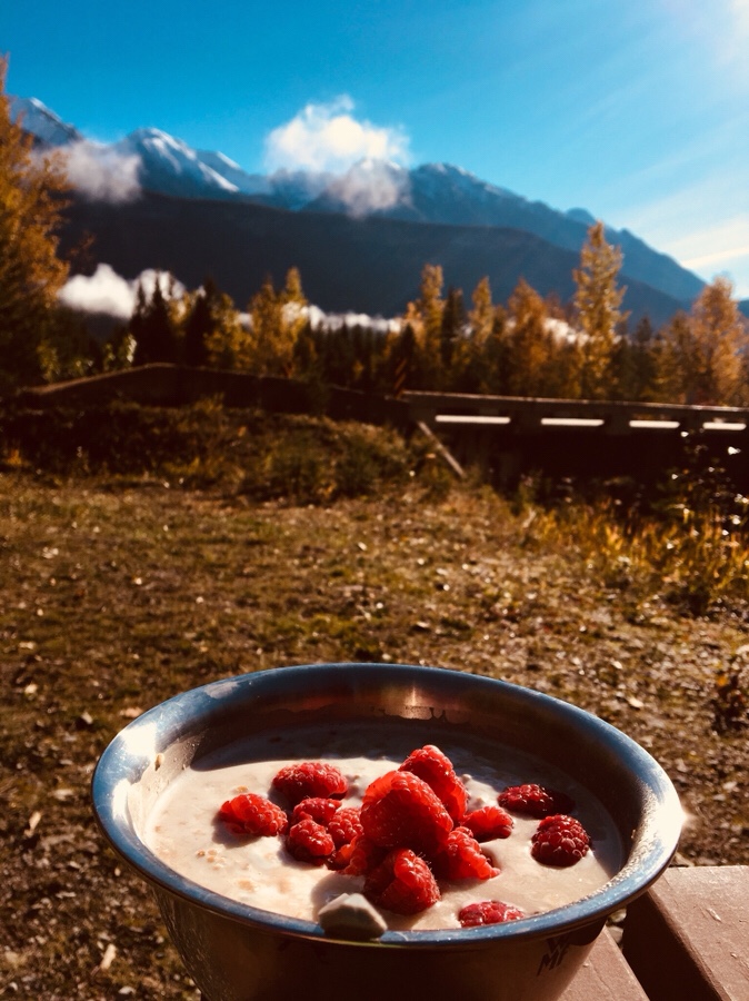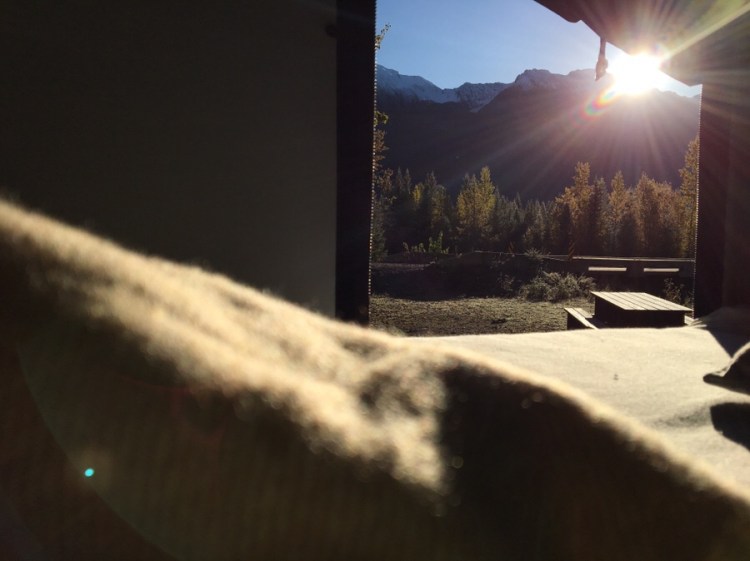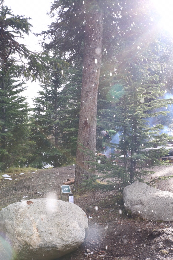 Am Icefieldcampingplatz erleben wir einen magischen Moment: Schnee und Sonne zugleich!