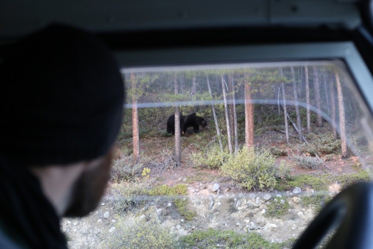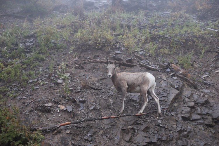 Einen Bären konnten wir voll schön beobachten, der streifte parallel zur Straße durchs Gestrüpp. Und die Ziege am Skiberg am Morgen im Nebel hat eigentlich uns beobachtet, nicht wir sie.