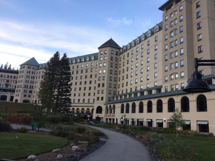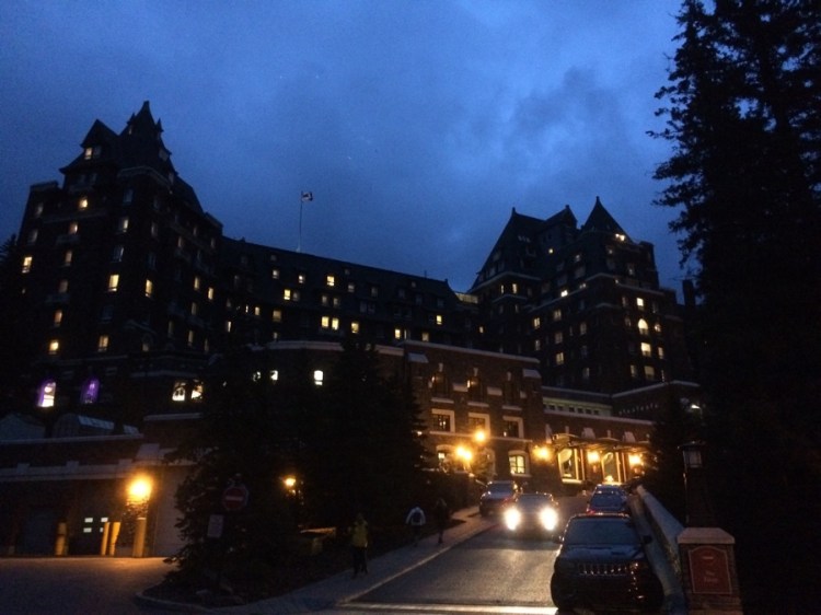 Im Fairmont Hotel am Lake Louise (erbaut 1894) haben wir keinen Drink ergattert, wir konnten nur Internet schnorren. Aber im Banff Springs Hotel saßen wir dann an der Bar und genossen die Atmosphäre des Gebäudes von 1928 im schottischen Burgenstil.