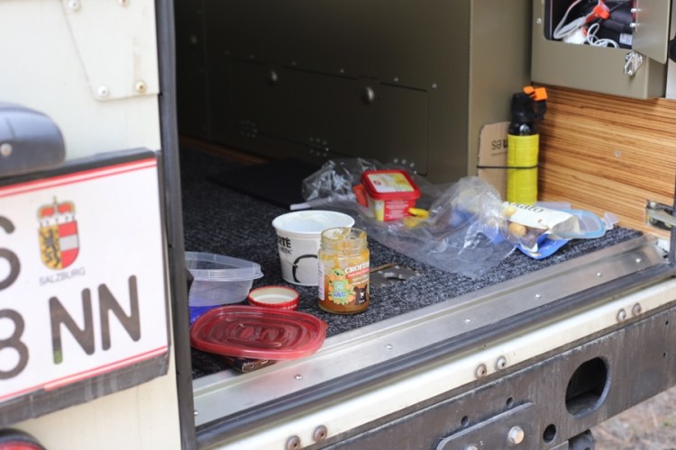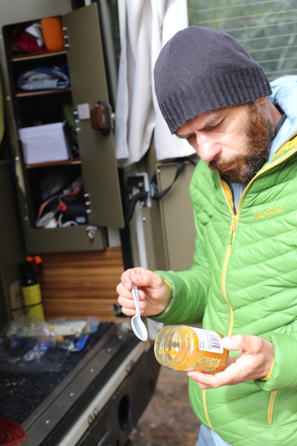 Aufgrund der strengen Einreisebestimmungen in die USA essen wir noch schnell alle Lebensmittel auf, die nicht importiert werden dürfen (Milchprodukte, Obst, Gemüse, Fleisch,… ). Lustigerweise kommen die Karotten aus den USA 😉