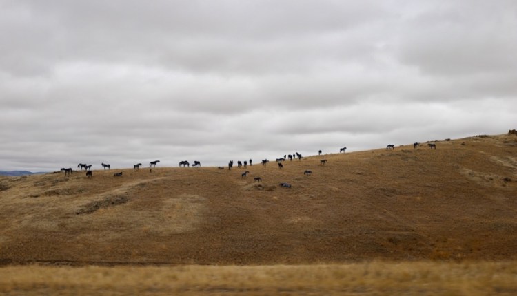 Die Kühe sind weder vom Defender noch von der Kälte beeindruckt. Und die Pferde am Hügel bewegen sich auch irgendwie gar nicht… ahhh… weil aus Eisen!