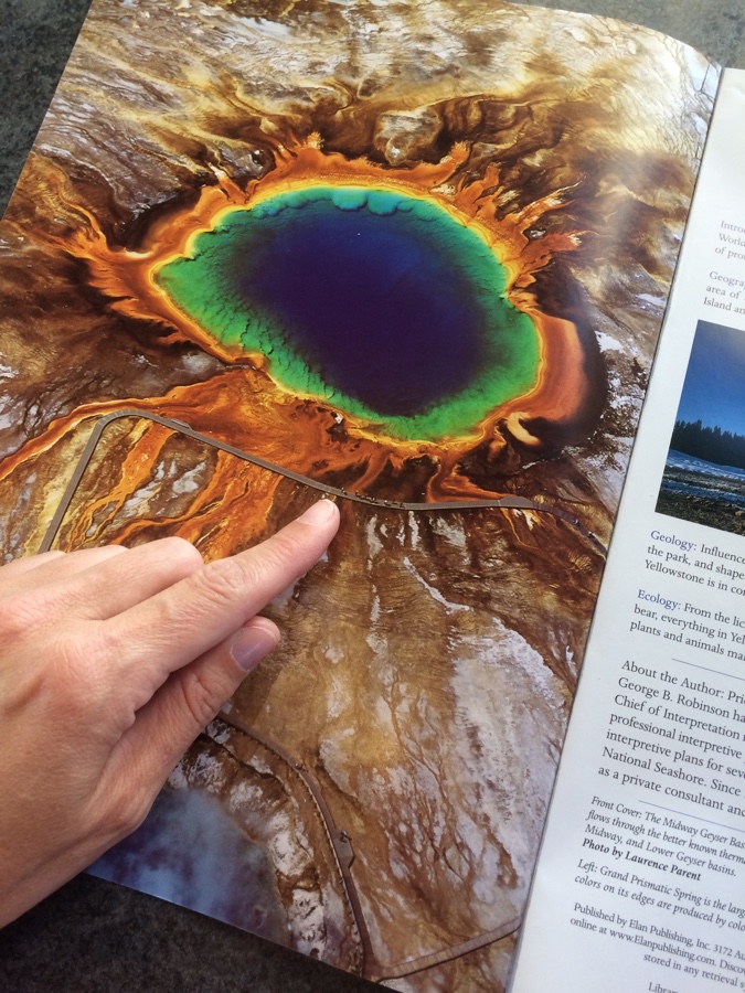 Infos und Luftaufnahme Grand Prismatic Spring: „Discovering Yellowstone“, Elan Publishing, 2010, Charlottesville