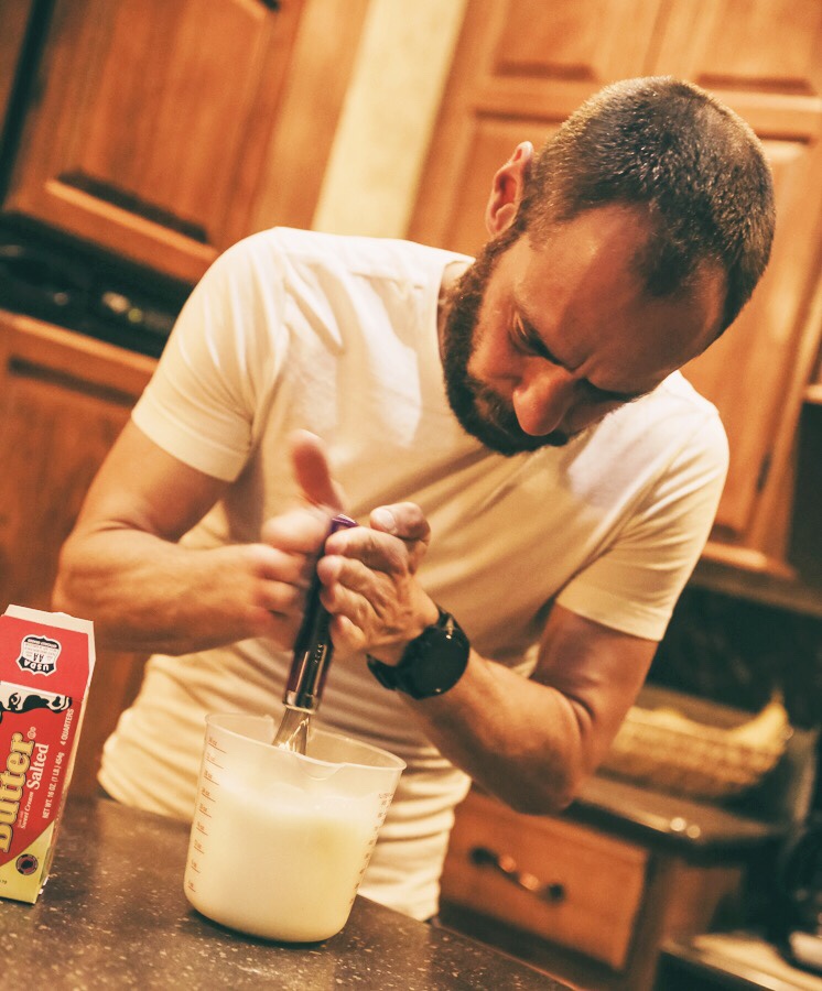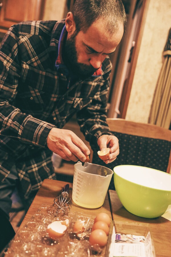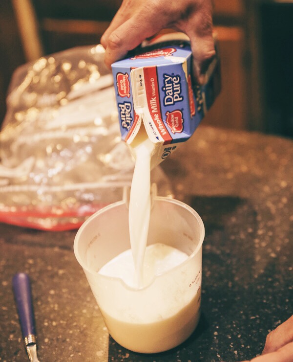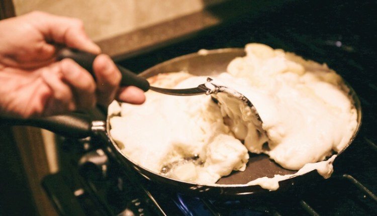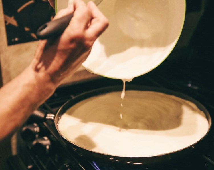 You need: 4 eggs, 1 small spoon of sugar, 1 package vanilla sugar, 375ml milk, 125 grams flour, 40 grams butter, a bit of salt