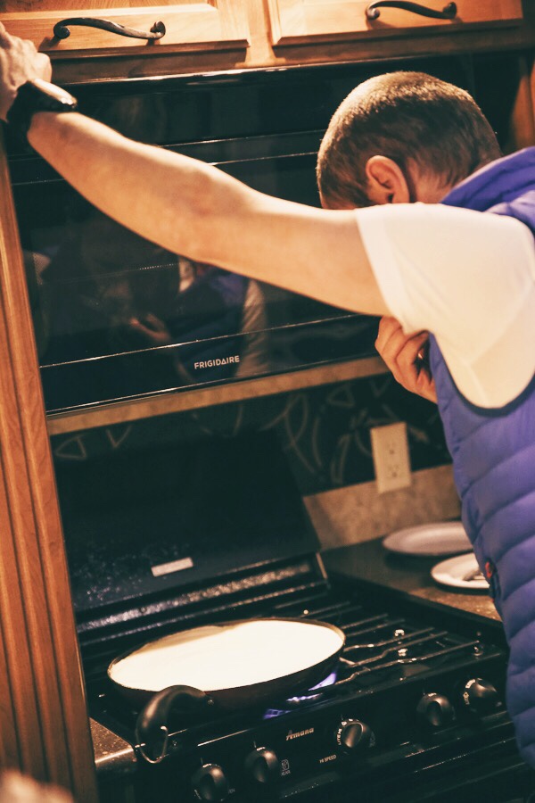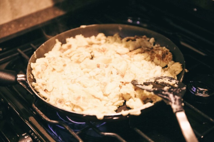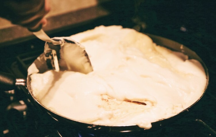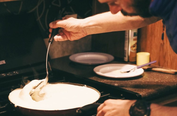 Put in the dough and wait until it is slightly brown on the bottom, then turn around wait again and divide into small pieces