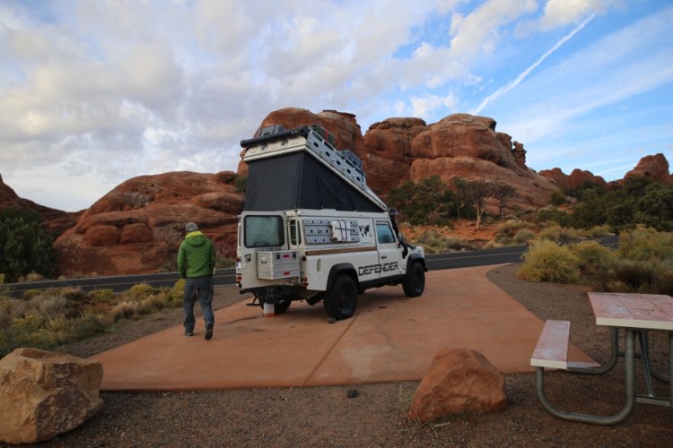 Der Defender kämpft sich von Westen auf einer kleinen Nebenstraße in den Arches National Park, an der auch Dinospuren waren. Arches ist gleich neben dem Canyonlands – aber ganz anders. Die weichen Formen und wunderschönen Farben zusammen mit dem roten Sand und Sandstein – definitiv eine Reise wert! Waren nur eine Nacht und sind nur zu einer Arch gewandert, aber das war toll und wir hätten noch mehr Fotos!