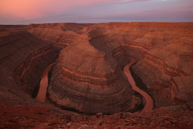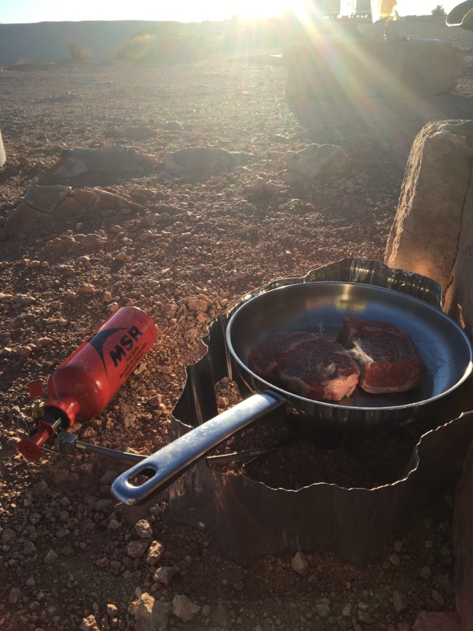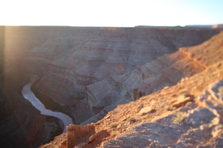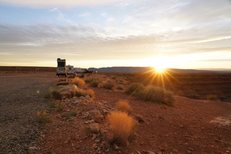 Man ist so nah dran und man glaubt es kaum! Es ist auf den Fotos, die ihr im Internet findet keine Fotomontage, es sind wirklich zwei Schleifen nebeneinander – keine Photoshop-Spiegelung! Voll schön! Für mich ein besonderer Ort und da wir eine Nacht an der Kante stehen, erleben wir hier Sonnenuntergang, Nacht und Morgenstimmung. Da Parken und anschaun 5$ kostet und Campen 10$ wundern wir uns, dass hier nicht mehr Autos stehen an diesem coolen, surrealem Spot.