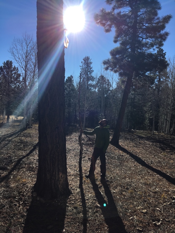 Zwei Nächte verbringen wir genau zwischen Grand Canyon und der Zivilisation irgendwo allein im Wald. Die vielen Eindrücke der Landschaft reichen auch erst mal… Pause tut gut… – natürlich mit Lagerfeuer!