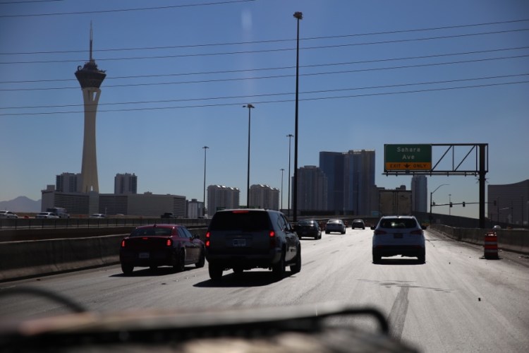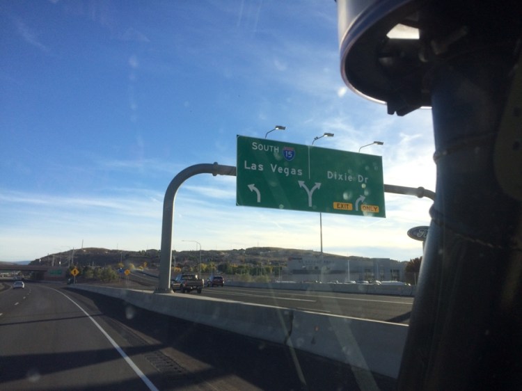 Während der Anfahrt auf Las Vegas suchen wir uns online ein Hotel, denn eine Nacht hier mittendrin zu verbringen wär schon interessant. Außerdem fliegen uns ein paar amerikanische Jagdflugzeuge um die Ohren.