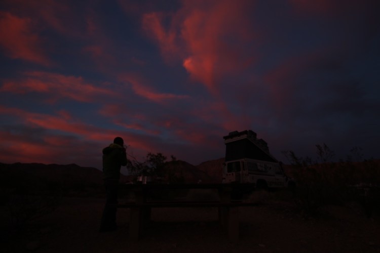 – Ein deutsches Paar, das in USA arbeitet. Er liebt Defender und seine Frau meinte: “Ich hab im Death Valley so oft gehört, dass diese Straße mit einem Defender halt möglich gewesen wäre und mit diesem Camper nicht!” Toitoitoi, dass es dann mal ein Defender wird!