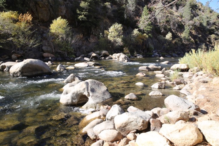 Auf der Strecke finden wir einen lebendigen Bach, einen netten Ort samt klassischem Diner und einen echt schönen Campingspot im Wald mit großen Zapfen. Hier wird mal wieder das Campingleben zelebriert.