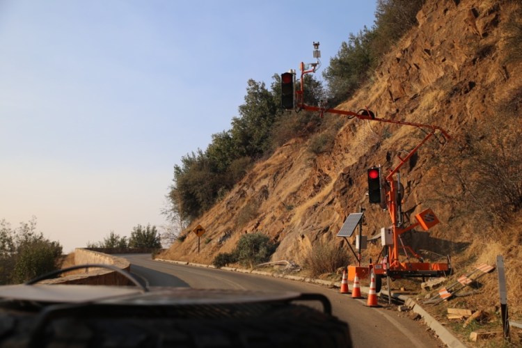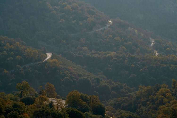 Weiter gehts bergauf, auf dem Weg erleben wir schöne Aussichten, einen geschlossenen alten Diner, wieder mal Herbst, sehr kurvige Strecken, ein zweites schönes Plätzchen am Wasser mit Brücke und Enten, sowie interessante Klapp-Ampeln…