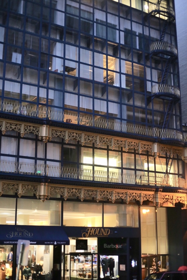 Das Hallidie Building ist eines der ersten Gebäude mit einer sogenannten Curtain Wall, die Glasfront selbst ist nicht tragend, ein Meilenstein der Architekturgeschichte. Auch wenn das Gebäude nun unscheinbar und „klein“ wirkt neben den Wolkenkratzern – es ist sozusagen die erste Generation, die deren Entwicklung erst möglich gemacht hat.