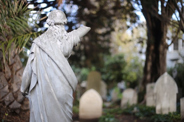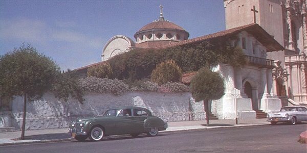 Hier geht Madeleine im Film durch die Kirche und steht abwesend vor einem Grab und legt Blumen ab. Der besagte Grabstein wurde von Hitchcock hinzugefügt, angeblich stand er lange Zeit noch zwischen den Gräbern, nun jedoch nicht mehr.
