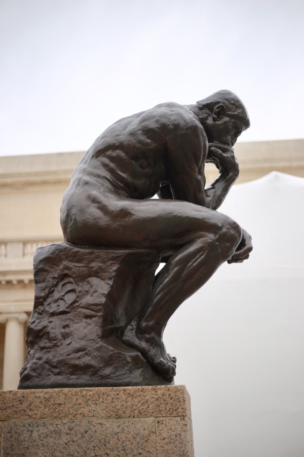 Natürlich gäbe es hier außer dem Denker von Rodin mitten im Innenhof noch mehr zu sehen, aber es war schon interessant genug, was man kostenlos – draußen und auf dem Weg zur Toilette – aufschnappen konnte.