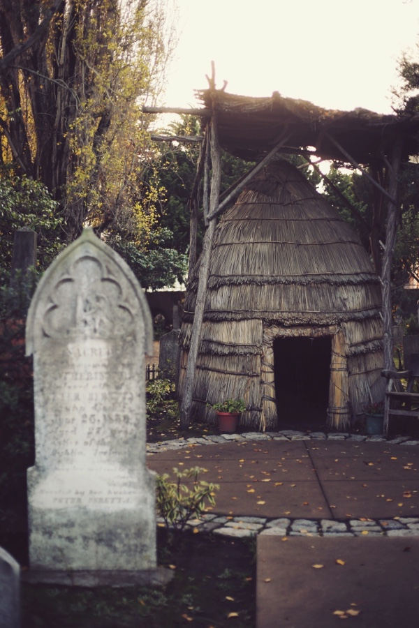 Ein weiterer Kontrast war die rekonstruierte indianische Hütte mitten im Friedhof, die in Erinnerung an die Traditionen der First Nations errichtet wurde.