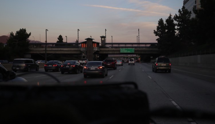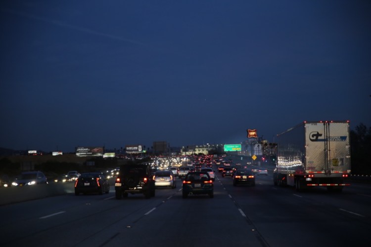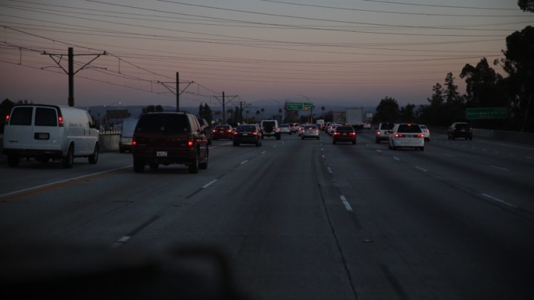 Dann kommen wir an Los Angeles zwar nicht wirklich nah vorbei, bekommen aber einen kleinen Vorgeschmack auf die Verkehrssituation rundum. Die Fahrspuren werden immer mehr, die Autos auch und links und rechts reihen sich Industriegebiete und riesige Einkaufsmärkte aneinander. Die überdimensionalen Filmplakate bieten dazu wenig Abwechslung, schön ist was anderes. 😉 Da wir (mindestens) zwei Personen im Auto sind, dürfen wir die ganz linke Extraspur benutzen. Interessante Idee, bringt aber auch nicht wirklich was und man muss dann echt schon sehr rechtzeitig wissen, wann man mal rechts rüber zur Abfahrt muss. Stressig ist es also eigentlich auf jeder Spur, noch dazu, weil man hier links und rechts überholen darf. Das spannende Hörbuch “Der Schwarm”, das uns normalerweise auf längeren Fahrten begleitet, hat deshalb Pause und wir hören erst nach LA weiter.