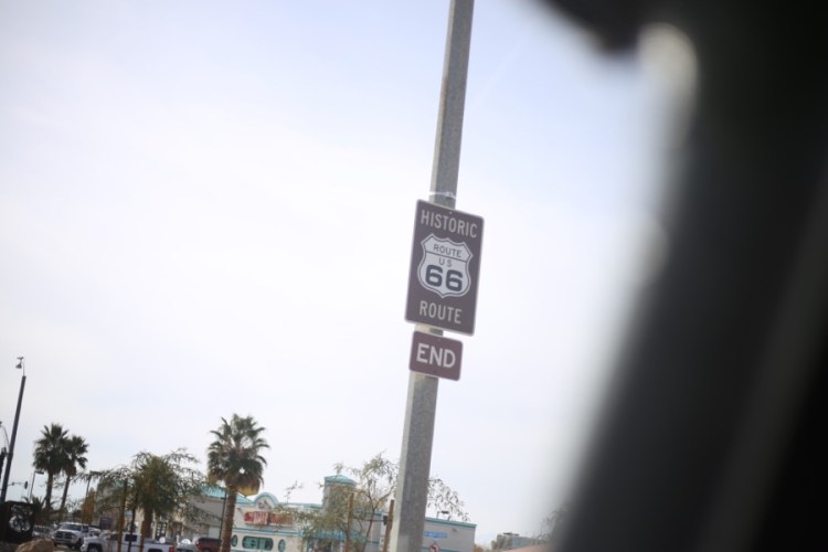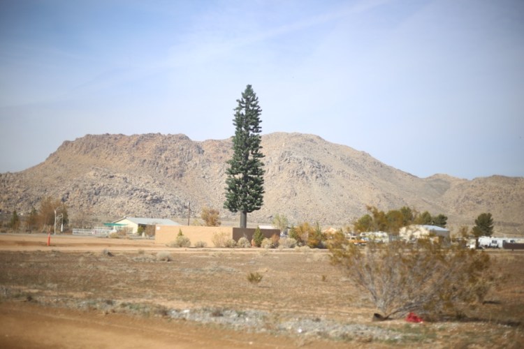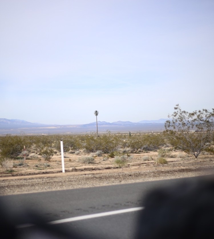 Interessante Landschaft, die Route 66, Handymasten und Architektur am Weg:
