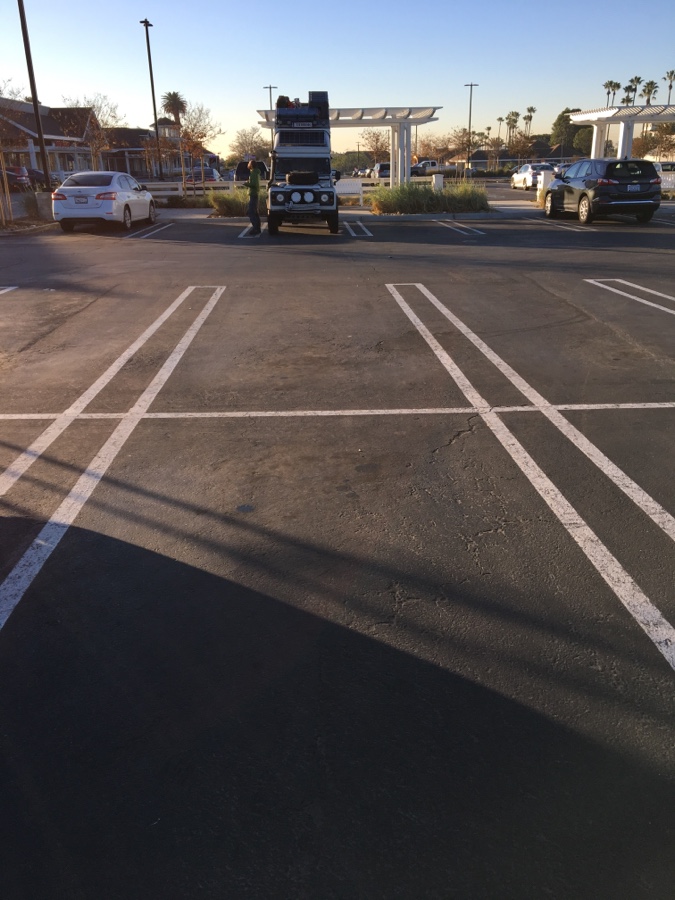 Nächster Plan: zum ACE Baumarkt fahren – wieder ein langweiliger Parkplatz 😉 – für Defender Kleinigkeiten wie Schrauben und kleinen Trichter besorgen. Zum nächsten Parkplatz, einen Schlauch suchen, aber der angesteuerte Autoparthändler hat das gesuchte Teil nicht.
