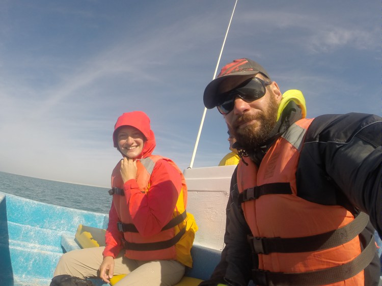 Wir sind die einzigen zwei Kunden… und anscheinend die ersten der Saison. Mit dem “neuesten Boot und dem ältesten Bootsführer” dürfen wir ganz allein rausfahren. Voll toll, fühlt sich an, als ob wir eine spezielle Exklusivtour gebucht hätten!