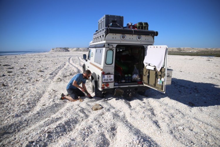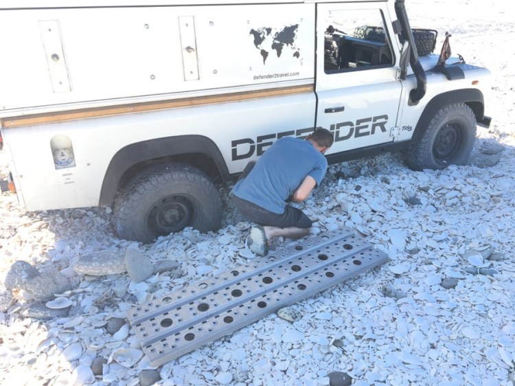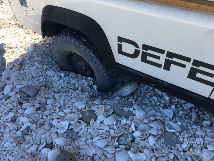 Uff, nie mehr wieder Muschelstrand oder ein anderer Strand mit dem Defender.