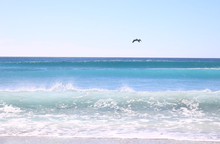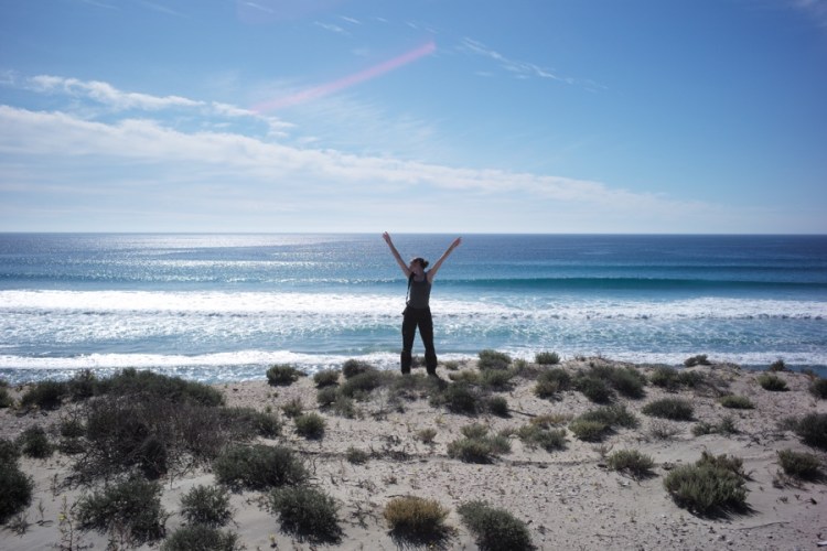 Schwimmen ein wenig im Pazifik, voll schön hier! Da vorne könnten wir übernachten, gute Idee! Als wir dort sind, entdecken wir das Skelett von einem größeren Tier, brrrrr hier wollen wir nicht bleiben, fahren wir doch noch ein paar Meter weiter zum Strand runter und dann nach vorne. Großer Fehler!!