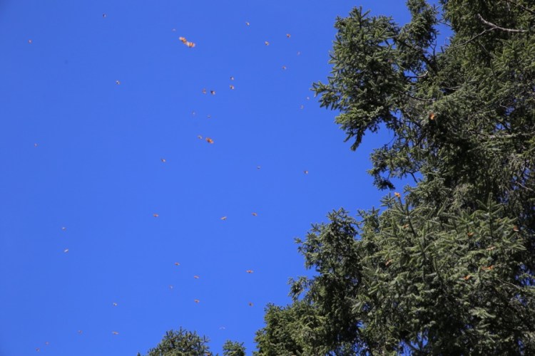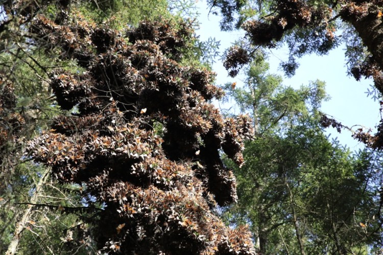 Der Schutz und die Ruhe für die Monarchfalter hat natürlich oberste Priorität. Man darf bis zu einer Absperrung hingehen, dahinter hängen die Monarchfalter in Trauben an den Bäumen, man sieht teilweise den Baum nicht mehr! Wenn es bei Sonnenschein warm ist, fliegen auch viele überall umher… wie Blätter im Herbst – aber eben Schmetterlinge… echt unglaublich!
