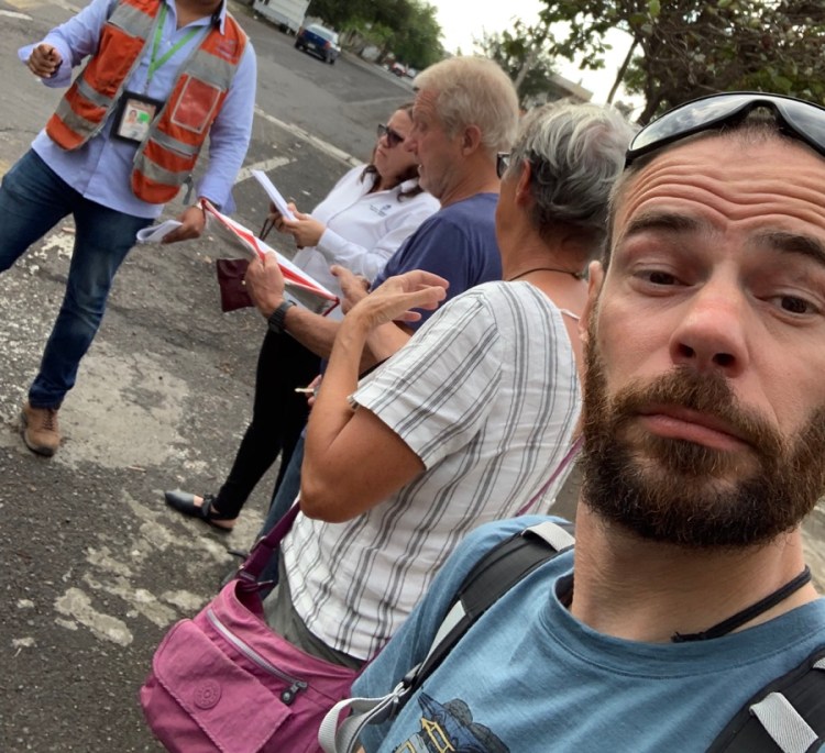 4. Versuch die Verschiffung zu bezahlen, auch wie es uns erklärt wurde. Laufen zur ersten Bank, Nummer ziehen, der ganze Raum ist voller Menschen, eine Stunde warten – nicht erfolgreich, da Kreditkarte nicht ging und Bar in Dollar oder Pesos geht prinzipiell nicht.