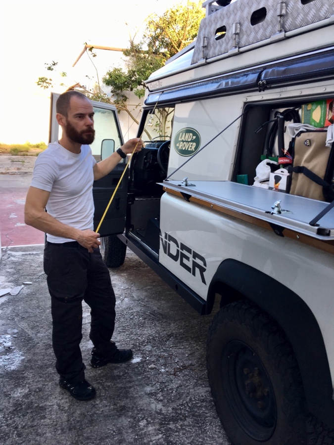 14. Im Hinterhof wieder Auto neu packen, Box wieder raus, alles Essen raus, Box wieder rein, wieder verzurren. Da der Zoll und die in Kolumbien wohl sehr, sehr streng sind, müssen wir echt alles rausnehmen, was irgendwie nach Essen aussieht.