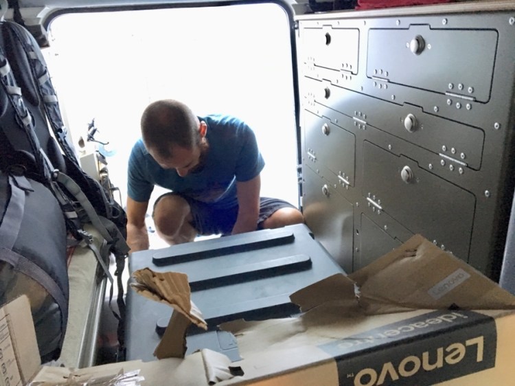 Dank eines High Cube Containers können wir dieses Mal die kleine Kiste und Scheinwerfer oben lassen.